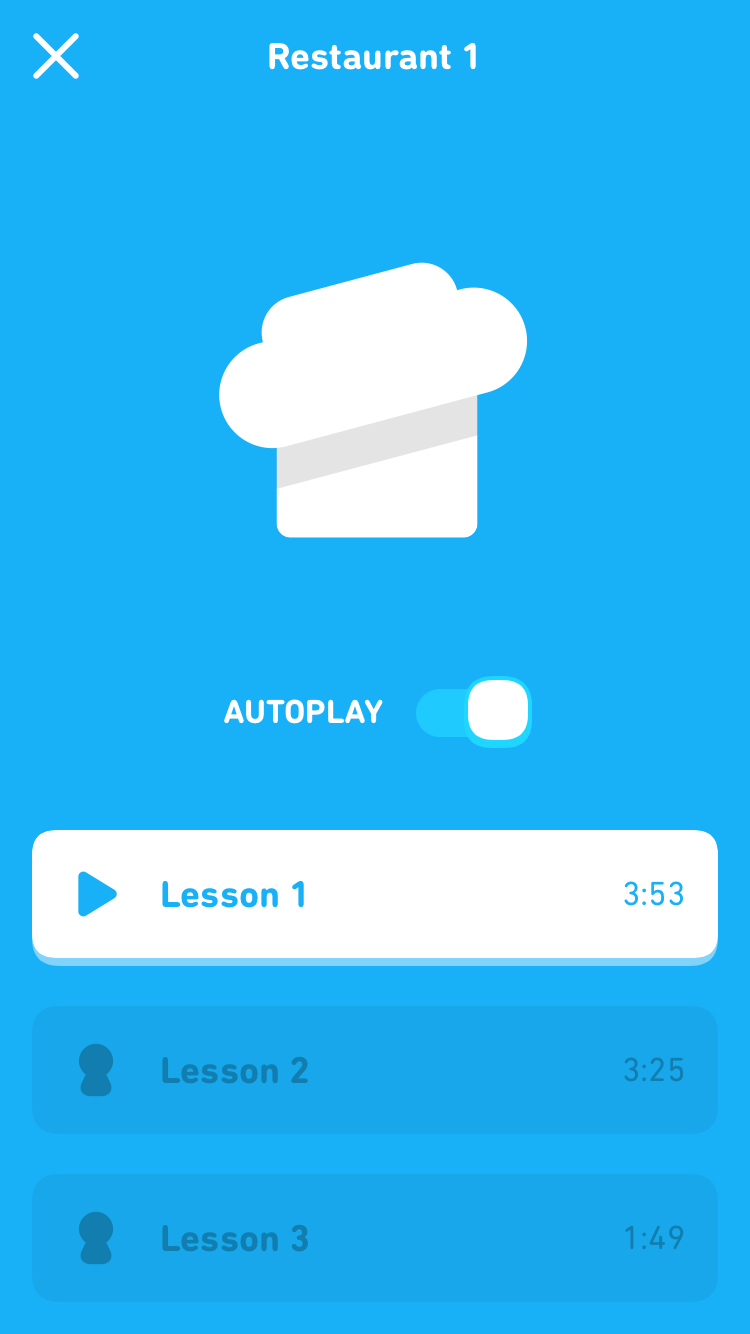 Ya que las Lecciones de audio se enfocan en tu capacidad para comprender y conversar, podrás aprender sin la necesidad de mirar tu teléfono o usar tus manos. Las lecciones escuchan automáticamente tu voz cuando es tu turno para hablar para que puedas aprovechar al máximo tu día, ya sea que estés caminando por la mañana, lavando ropa o descansando en el sofá después de un largo día. Hay Lecciones de audio sobre temas básicos y otras sobre temas de nivel intermedio para que puedas empezar a hablar al instante, sin importar cuánta experiencia tengas.